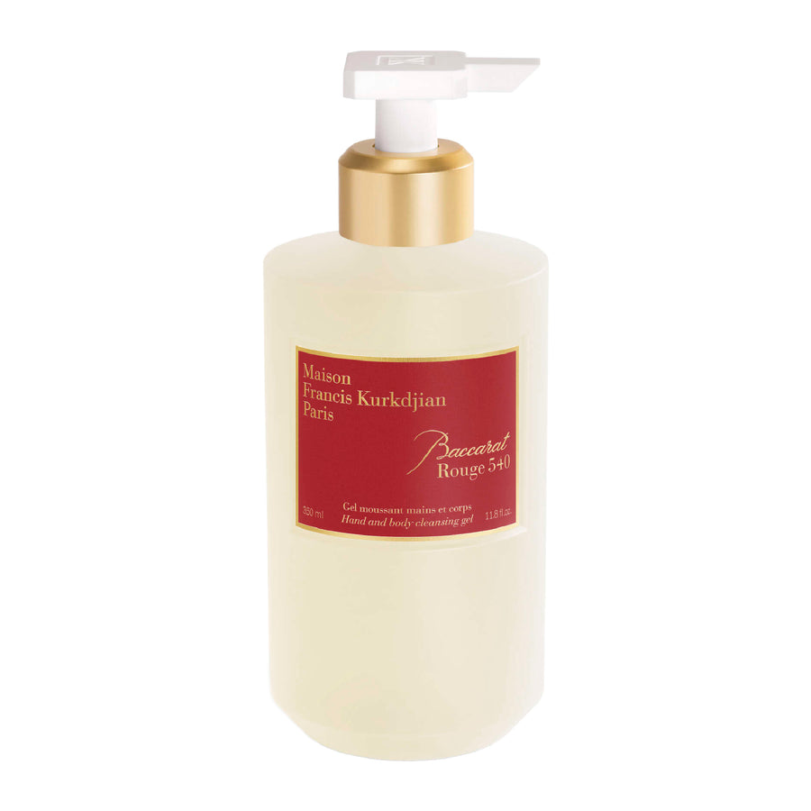 Baccarat Rouge 540 hand and body cleansing gel gently cleanses the skin and delicately perfumes the body and the hands. On contact with water, the gel is transformed into a rich scented foam for a moment of comfort and sensorial well-being. Rinse off and indulge fully in the fragrance. The skin feels soft, moisturized and supple.