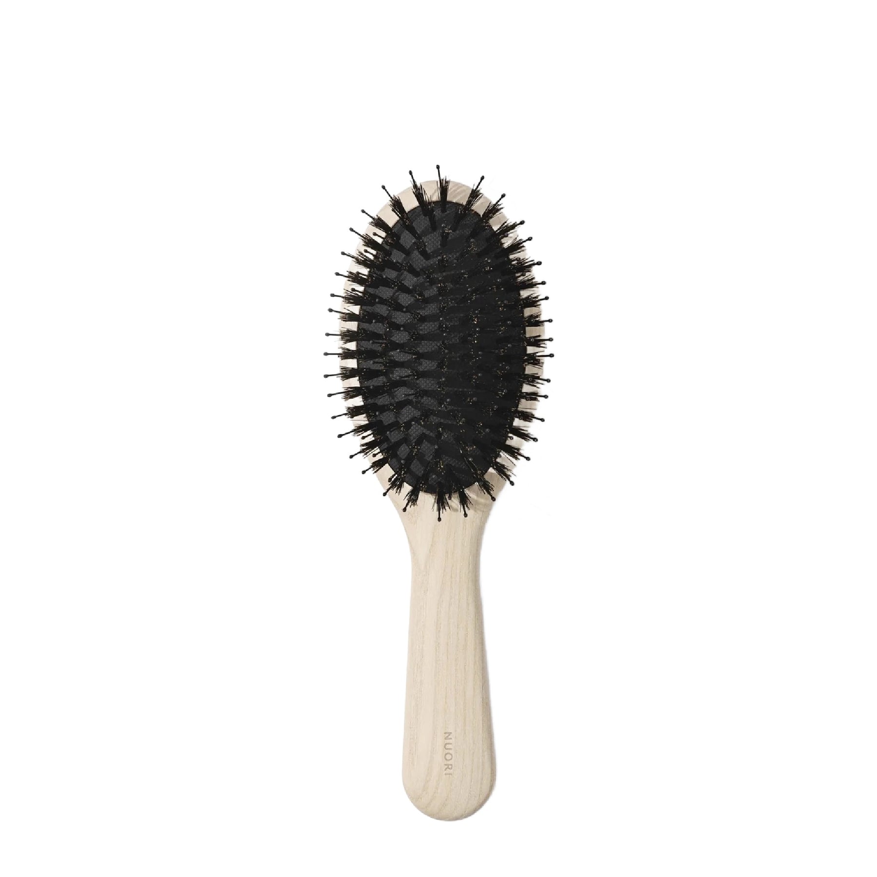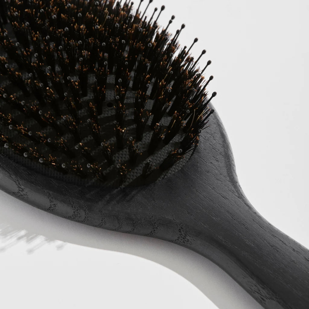 • Boar bristles distribute natural oils from scalp through the hair and help fight fly-aways and frizz. The oils also ensure added protection and shine of every hair strand.